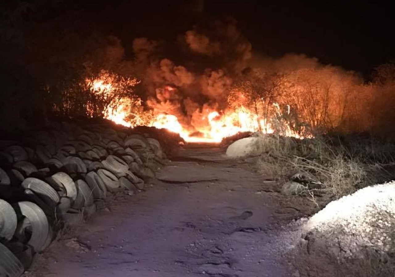 El tercer incendio fue de mayor magnitud y se registró en el Relleno Sanitario. El reporte oficial indica que por “efecto lupa” alrededor de las 4:30 de la tarde, dio inicio un conato de incendio en el área donde se ubica una de las celdas de recolección de este sitio.
