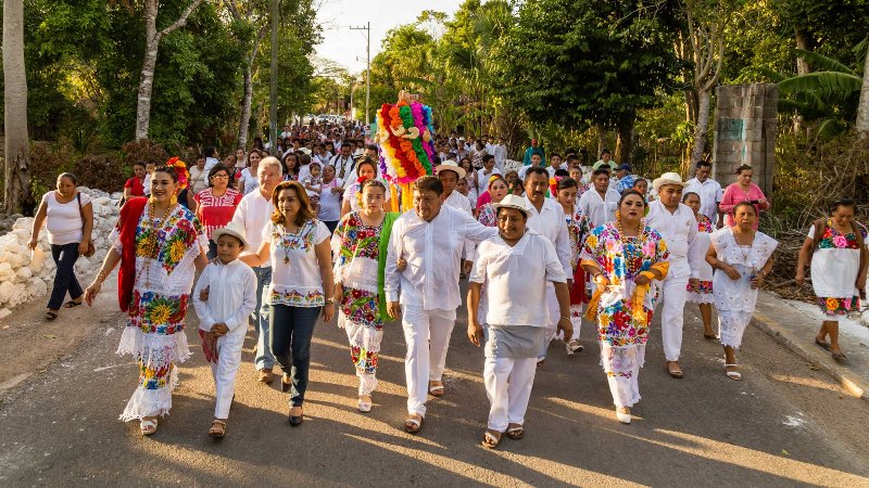 En un ejercicio para reforzar su identidad y recordar sus antiguas tradiciones, cientos de habitantes de Cuncunul, ataviados con el traje típico de la entidad, realizaron un recorrido por las calles de la población para festejar el Mes de la Familia.