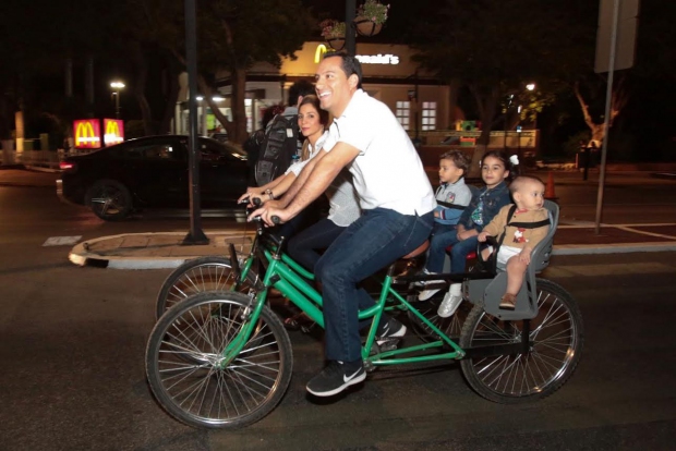 Acompañado de su esposa, María Eugenia Ortiz Abraham y sus hijos Alejandrina, Mauricio y Santiago, el alcalde manifestó que a un año de inaugurarlo, se hanb realizado algunas mejoras en Paseo de Montejo como, internet inalámbrico gratuito. Hoy, la avenida también cuenta con nueva iluminación de tal forma que los ciclistas y los paseantes pueden convivir y divertirse de forma más segura, pues en el caso de la Biciruta Nocturna cuenta con el apoyo de los elementos de la Policía Municipal de Mérida y de la Secretaría de Seguridad Pública.