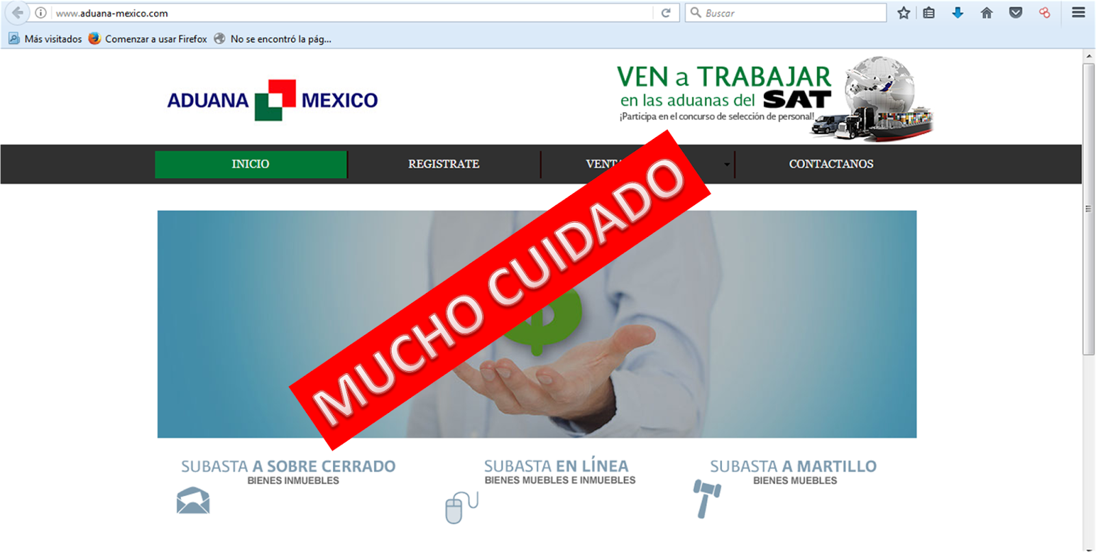 La empresa de Seguridad en la Información Hals Intelligence Mérida alertó este jueves sobre la existencia del sitio web apócrifo de Aduanas con la url: http://www.aduana-mexico.com/