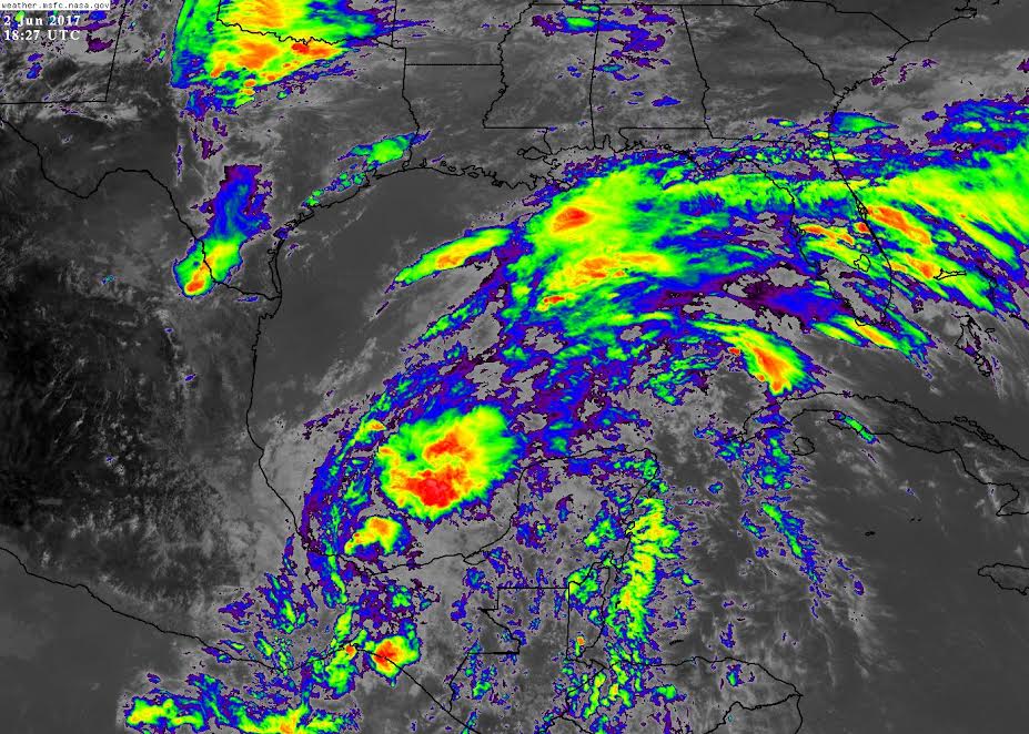De acuerdo con los pronósticos, para este sábado se espera que una baja presión, remanente de lo que fuera la tormenta tropical Beatriz, que se ubicaría sobre el suroeste del Golfo de México, genere lluvias localmente muy fuertes sobre los estados de Campeche y Quintana Roo, mientras que para Yucatán se anticipan de tormentas muy fuertes a puntualmente intensas.