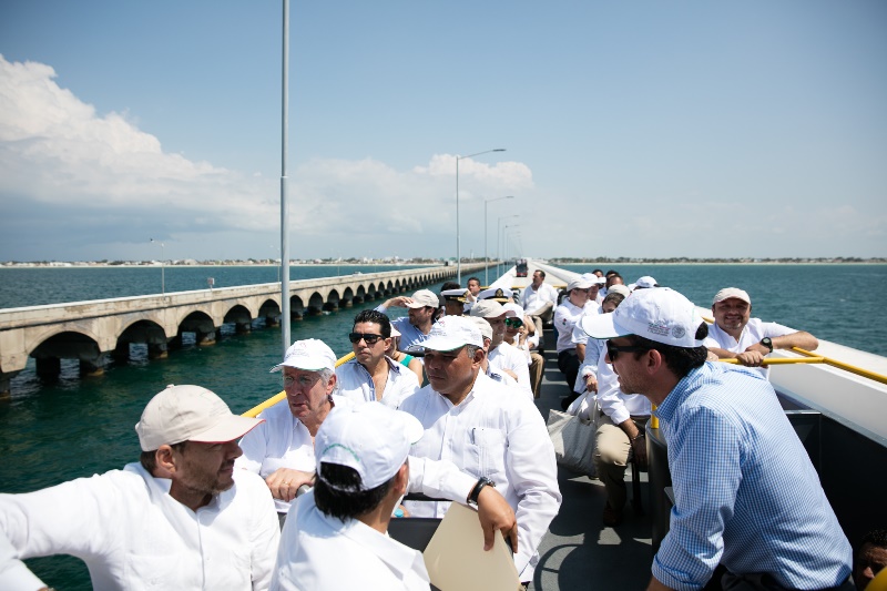 Posteriormente, las autoridades realizaron un recorrido por el viaducto alterno del emblemático muelle donde resaltaron las ventajas que aporta para el tránsito ágil de mercancía y carga pesada mediante sus dos kilómetros y medio con un ancho de 14 metros en dos carriles, que representó una inversión de 738.8 millones de pesos.