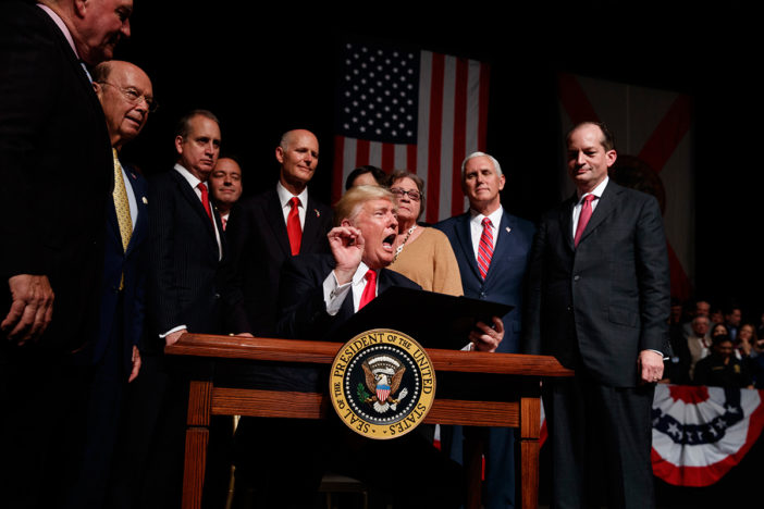 “El resultado de las acciones ejecutivas que tomó el gobierno anterior (el de Obama) han sido solamente más represiones –en Cuba-, y el aplastamiento de movimientos democráticos pacíficos, por eso, con efecto inmediato, estoy cancelando completamente el acuerdo parcial con Cuba que firmó el gobierno anterior”, declaró Trump ante los aplausos de la comunidad cubano-estadunidense que asistió el evento.