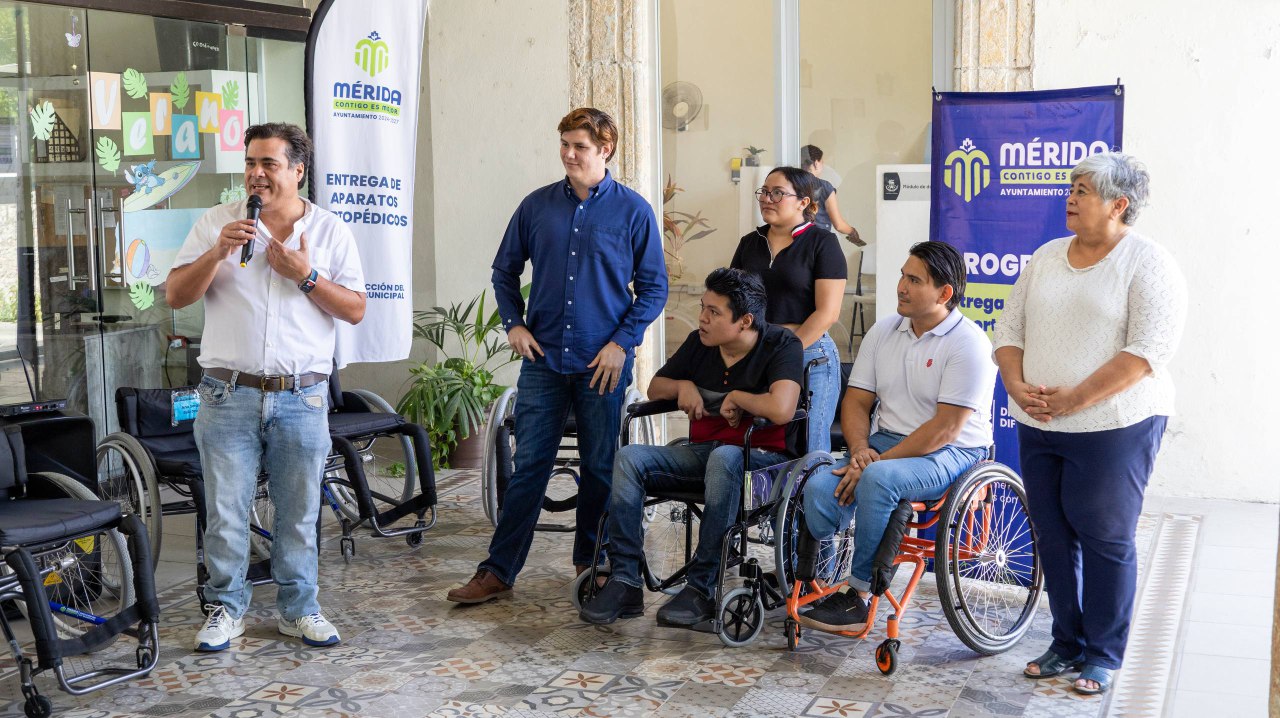 De esta manera, a través del DIF Mérida y la Dirección de Prosperidad y Bienestar Económico, se entregaron nueve sillas de ruedas: cuatro de ellas en propiedad permanente y cinco en calidad de préstamo, con el fin de apoyar a quienes se capacitan en el manejo adecuado de estos equipos y promover su autonomía y plena inclusión en todos los ámbitos de la vida.