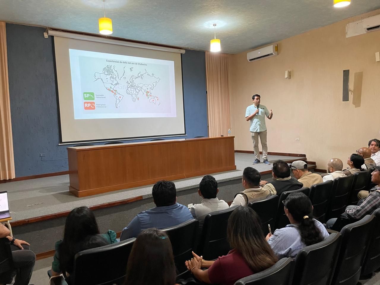 El evento, realizado en el auditorio del Campus de Ciencias Biológicas y Agropecuarias de la UADY, reunió a más de cien brigadistas de campo de los Servicios de Salud de Yucatán, quienes tendrán un papel fundamental en la aplicación de esta estrategia innovadora para el control de vectores transmisores de enfermedades como dengue, zika y chikungunya.