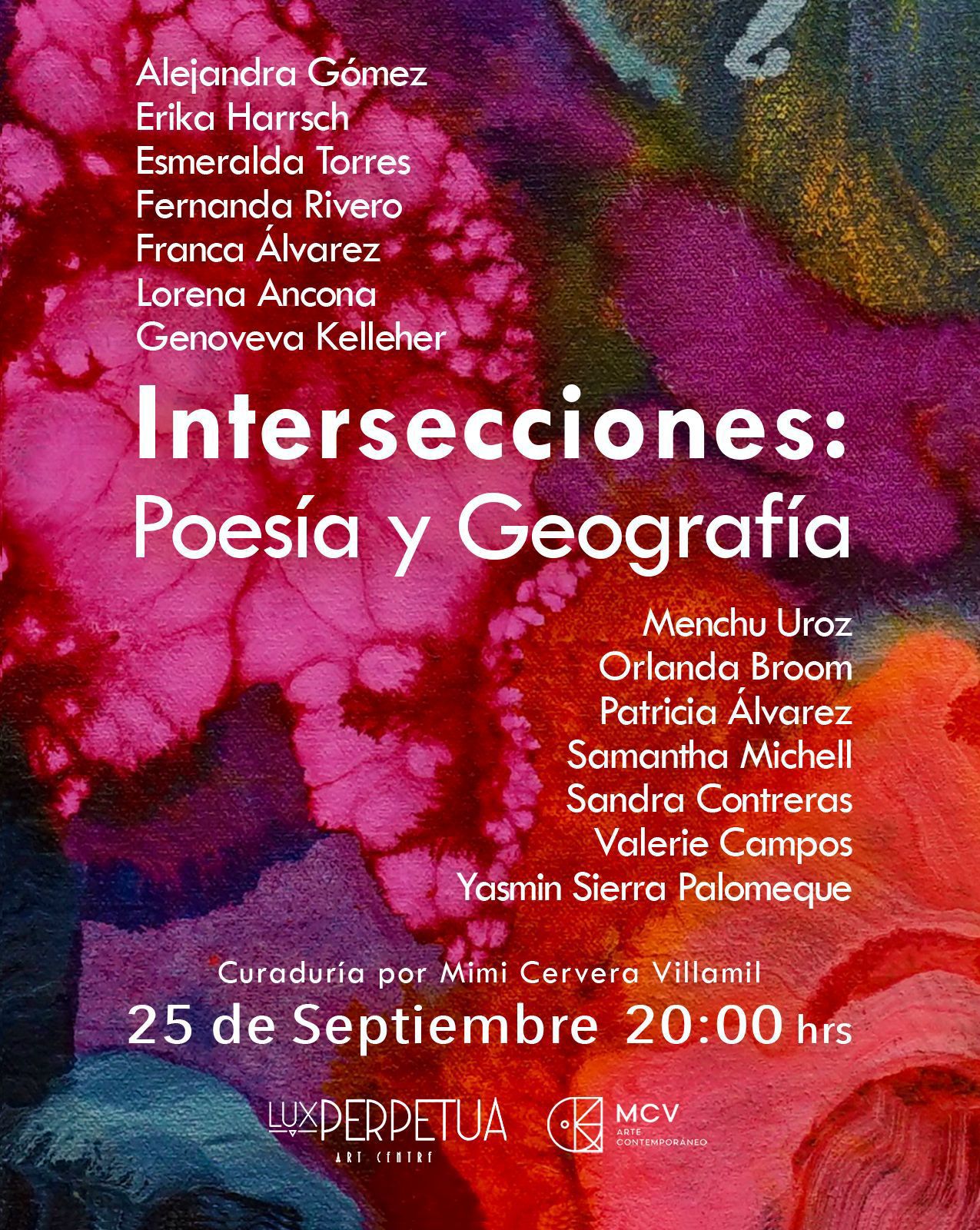 El próximo jueves 25 de septiembre a las 20:00 horas, la galería Lux Perpetua Art Centre inaugura la exposición “Intersecciones: Poesía y Geografía”, una muestra colectiva integrada por catorce artistas nacionales e internacionales, todas mujeres, cuya obra dialoga en torno al paisaje como eje central.