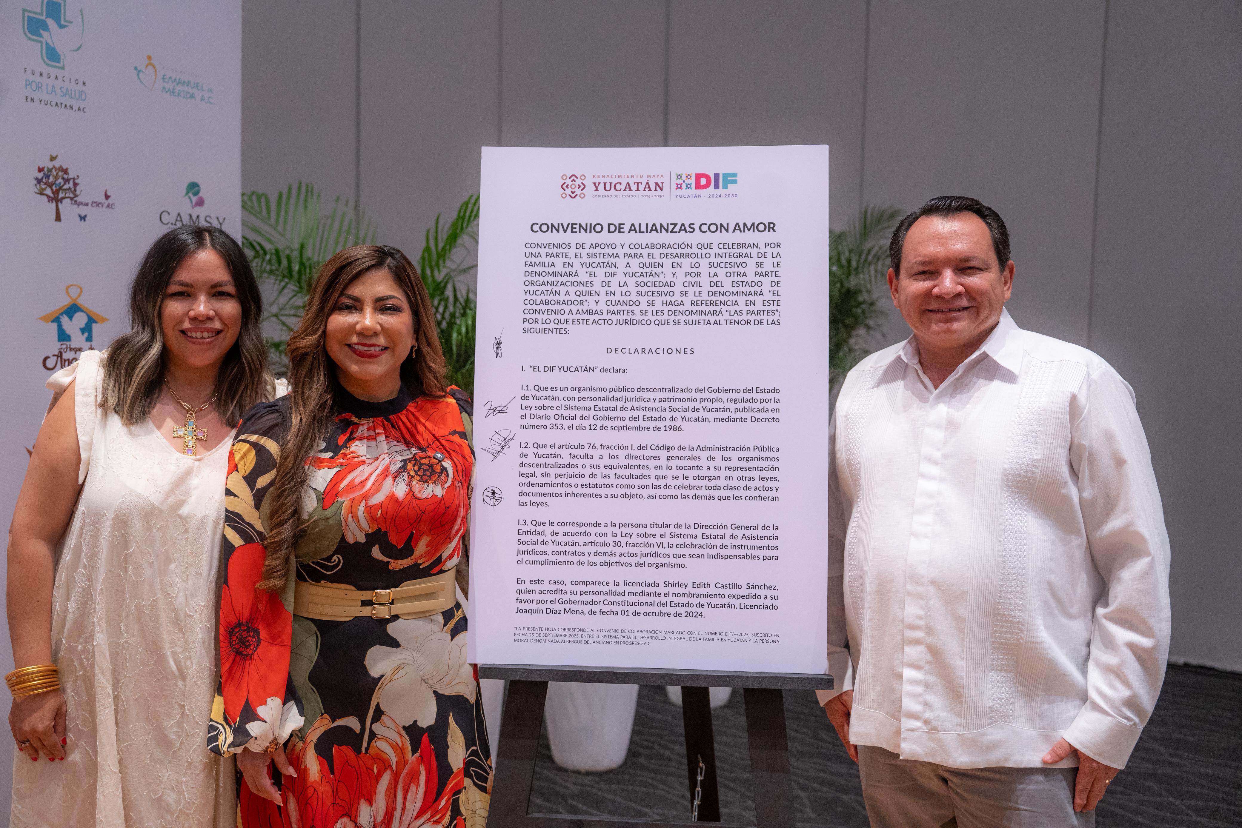 El Gobernador también presentó el proyecto Alianzas con Amor, que integra al Gobierno del Estado, el DIF Yucatán y 60 organizaciones civiles para acompañar a quienes más lo necesitan.