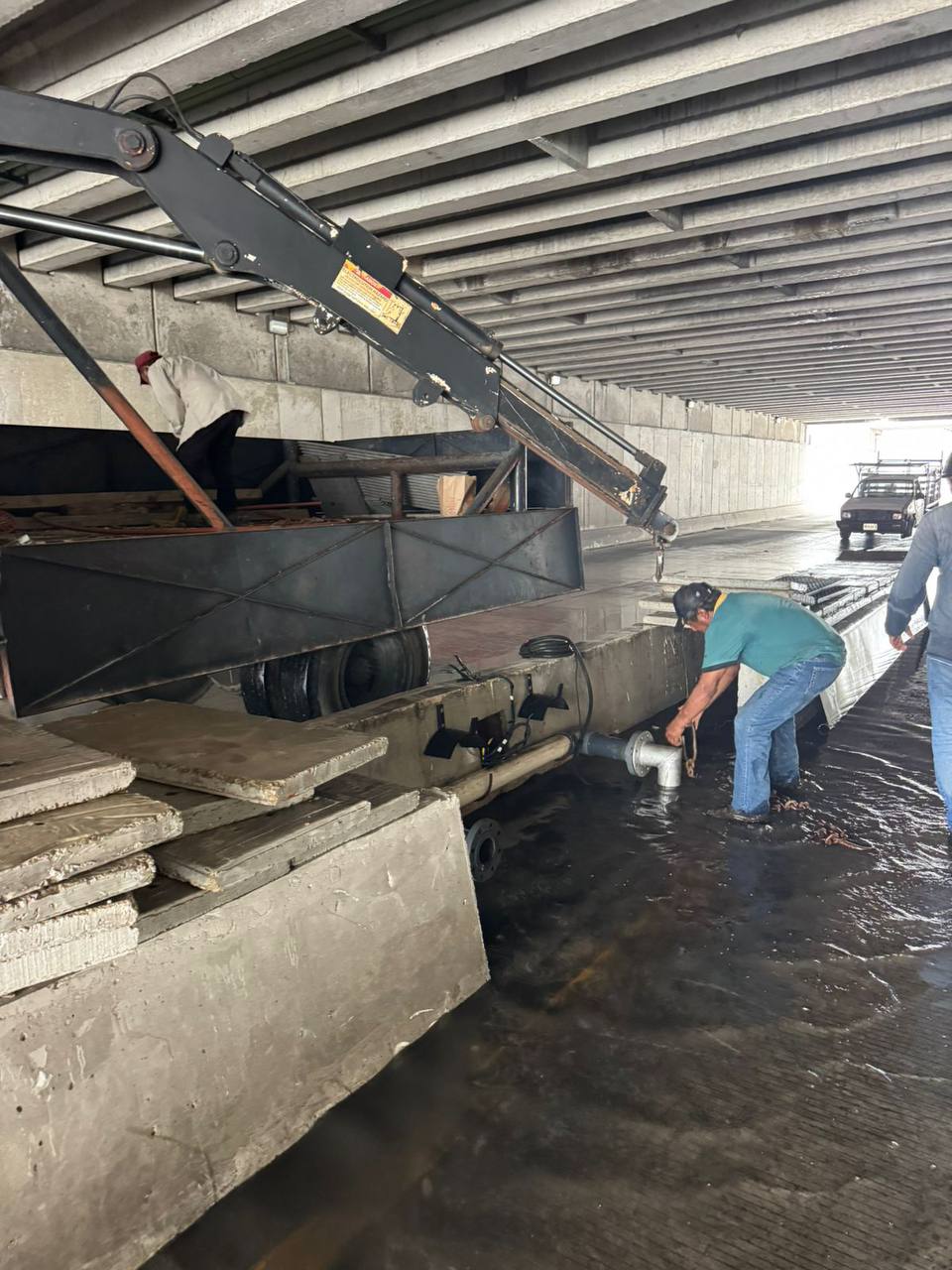 La Dirección de Servicios Públicos informó que esta mañana iniciaron los trabajos de mantenimiento de las bombas de agua y ductos del paso deprimido, a fin de garantizar su óptimo funcionamiento durante lo que resta de la temporada de lluvias.
