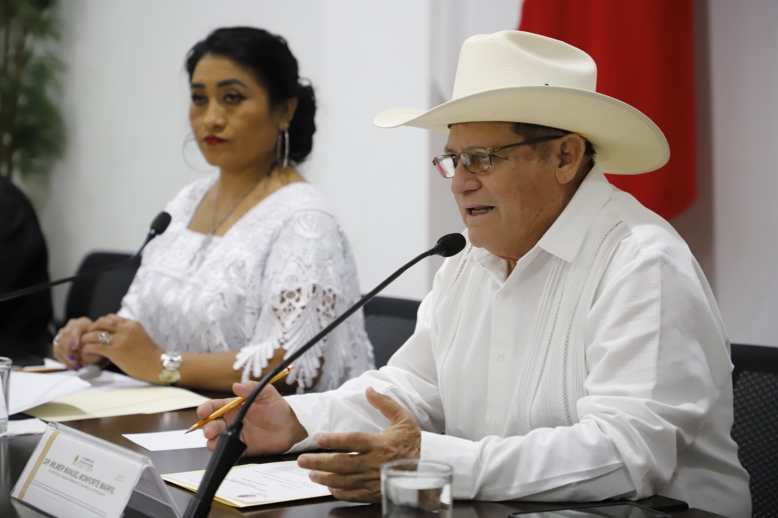 El Presidente de la Mesa Directiva, diputado Alejandro Cuevas Mena, hizo entrega del galardón a la viuda del homenajeado, Ana Desideria Góngora Puga y a su hijo Rudy Omar Coronado Góngora, acompañado del representante del Poder Ejecutivo y Secretario General de Gobierno, Mtro. Omar Pérez Avilés; del representante del Poder Judicial, Magistrado Hernán Vega Burgos; y del diputado Wilmer Manuel Monforte Marfil, presidente de la Junta de Gobierno y Coordinación Política.