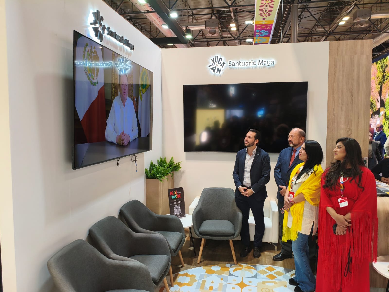 Mediante un video, el Gobernador Joaquín Díaz Mena destacó que, con una herencia cultural viva y una infraestructura turística de primer nivel, Yucatán se posiciona como el corazón del Mundo Maya, un territorio que cautiva por su gastronomía, su historia milenaria, la diversidad de sus paisajes y la calidad de sus servicios turísticos, atributos altamente valorados por el mercado europeo.