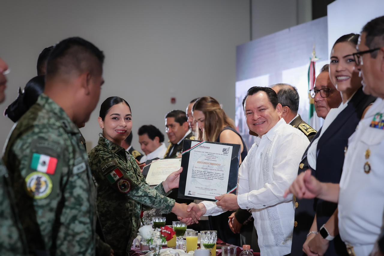 El Gobernador Joaquín Díaz Mena encabezó la conmemoración del CXIII Aniversario del Ejército Mexicano, ceremonia en la que 210 elementos de esta corporación recibieron el reconocimiento y el respaldo del pueblo de Yucatán por su trabajo diario en favor de la seguridad y la soberanía nacional.