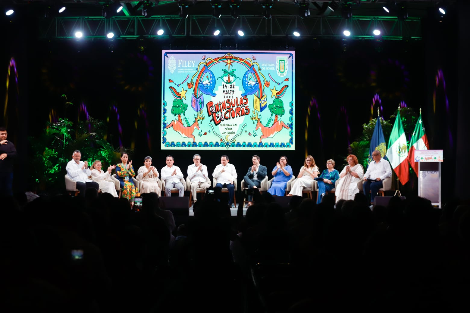 La apertura del encuentro cultural, que se lleva a cabo del 14 al 22 de marzo en el Centro de Convenciones y Exposiciones Yucatán Siglo XXI, también contó con la presencia de María Teresa Mézquita Méndez, directora de la Feria Internacional de la Lectura Yucatán.