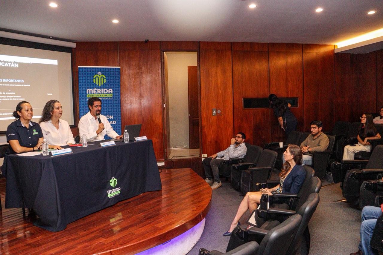 En rueda de prensa realizada en la videosala del Olimpo, Karla Berrón Cámara, directora de Identidad y Cultura del Ayuntamiento de Mérida, acompañada de Claudia Chapa Cortés, subdirectora de Cultura, y Jonathan Hellwig, delegado de CANACINE, dio a conocer los pormenores de la mencionada convocatoria, invitando a todas las personas creativas a sumarse a esta oportunidad.