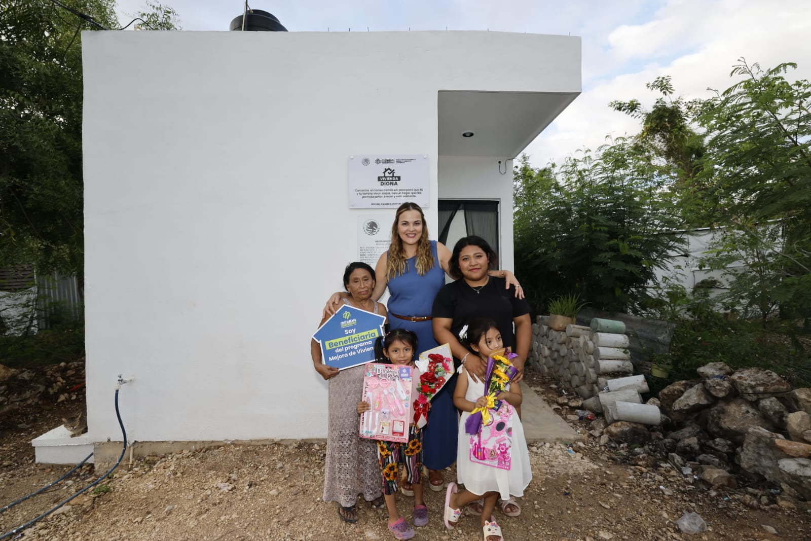 Como parte de esta estrategia integral, se realizaron entregas de acciones de vivienda en Santa Cruz Palomeque, Dzununcán, Xmatkuil y el Roble Agrícola donde las familias beneficiarias ahora cuentan con cuartos dormitorio, así como con pisos y techos firmes, elementos esenciales para garantizar una mejor calidad de vida.