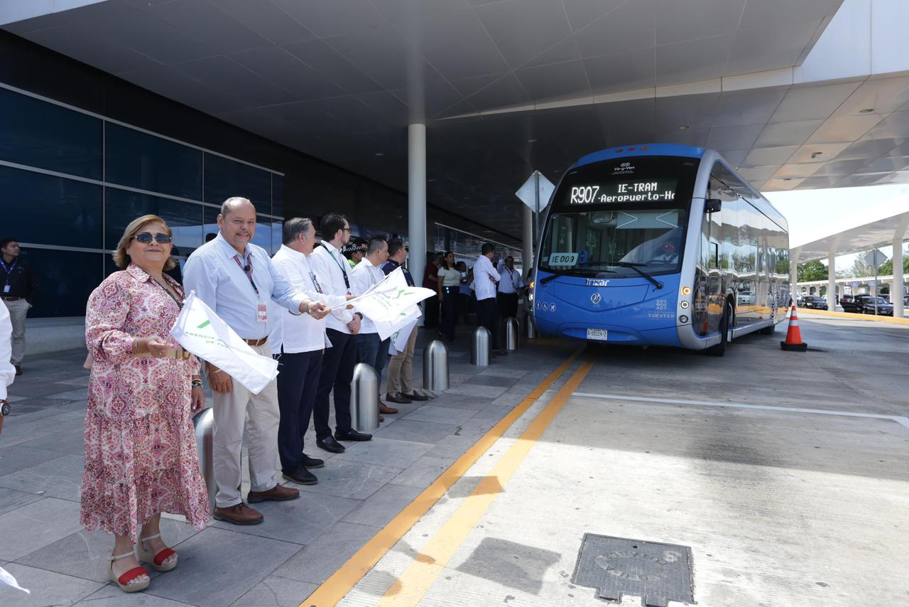 Acompañado del inspector verificador aeronáutico de la AFAC Mérida, Luis Alfredo López García, y de la directora de Relaciones Públicas de la Secretaría de Fomento Turístico de Yucatán, Addy Pérez, el titular de la Agencia de Transporte de Yucatán, Jacinto Sosa Novelo, dio el banderazo de inicio de operaciones de la Ruta Aeropuerto, donde destacó la importancia de seguir impulsando la modernización del transporte masivo.